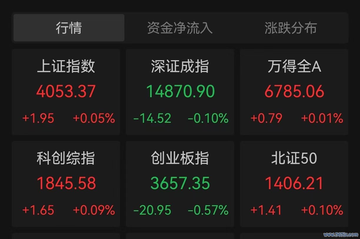 4月20日,四大股指开盘涨跌不一,上证指数开盘报4053.37点,涨0.05%,深成指开盘报14870.9点,跌0.1%,创业板指开盘报3657.35点,跌0.57%,科创综指开盘报1845.58点,涨0.09%。