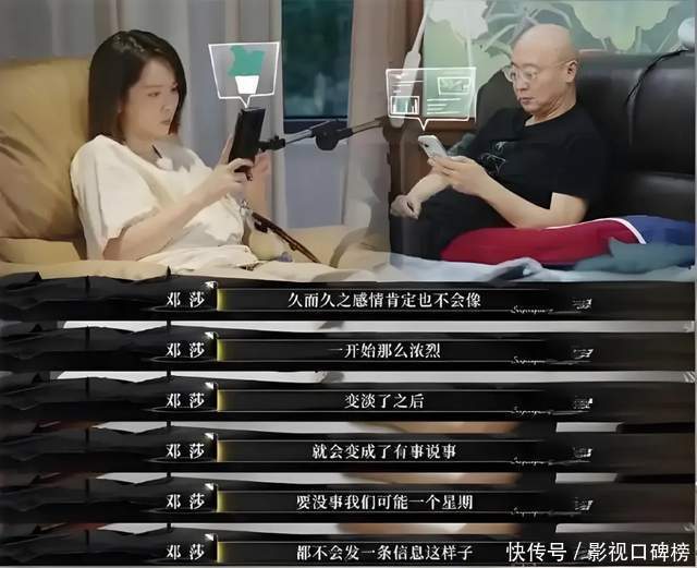 这种微妙而又尴尬的氛围落在刚青春期的儿子眼里,自然分外刺眼。邓莎参加节目前就问过儿子:“如果之后有同学或朋友告诉你在电视中看见爸妈吵架,你会怎么回答人家?”孰料儿子直接一语道破天机称:“你们不吵架,但也不说话。”邓莎的儿子才12岁,跟妈妈说话时,却能有如此成熟的思维和表达。尤其提到父母的相处时,他流露出的失落与无助让屏幕前的观众共情。